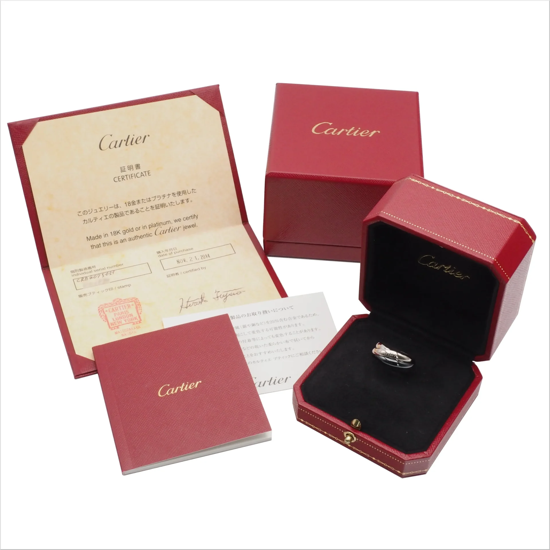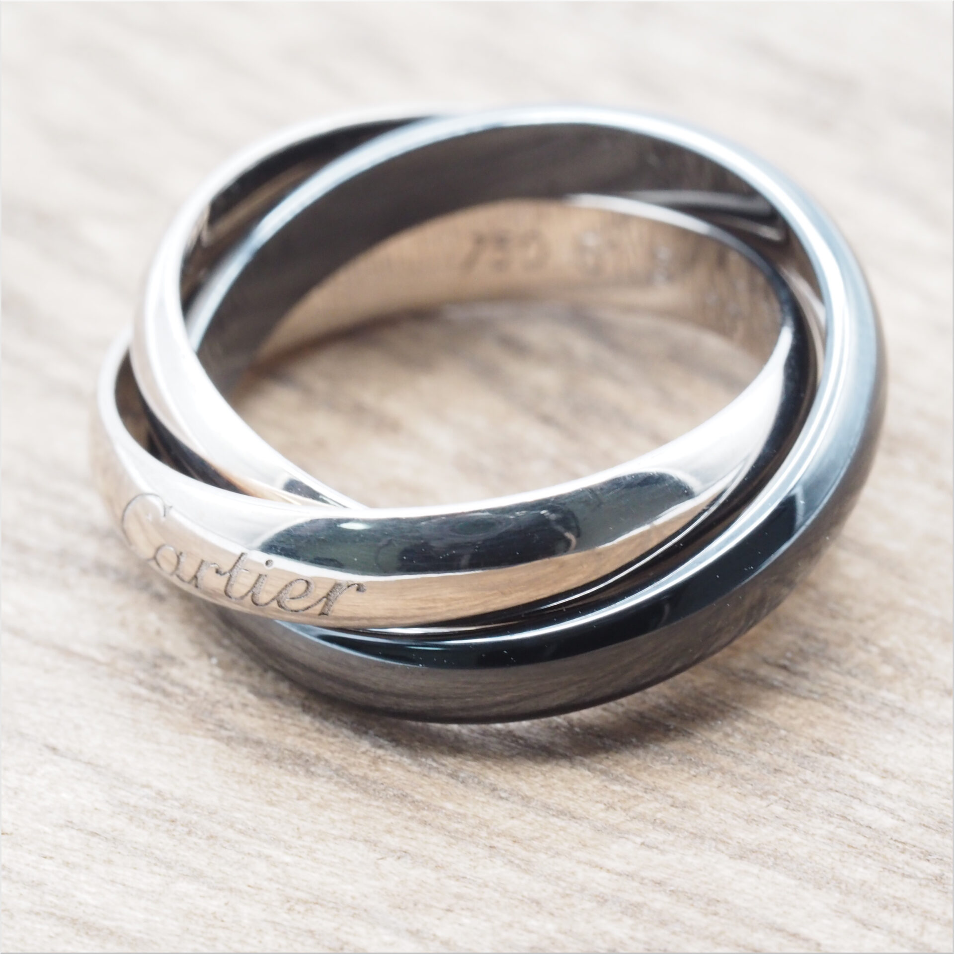 Cartier カルティエ トリニティ リング #51(約11号) B4095651 ホワイトゴールド 18KWG 黒セラミック CE Au750