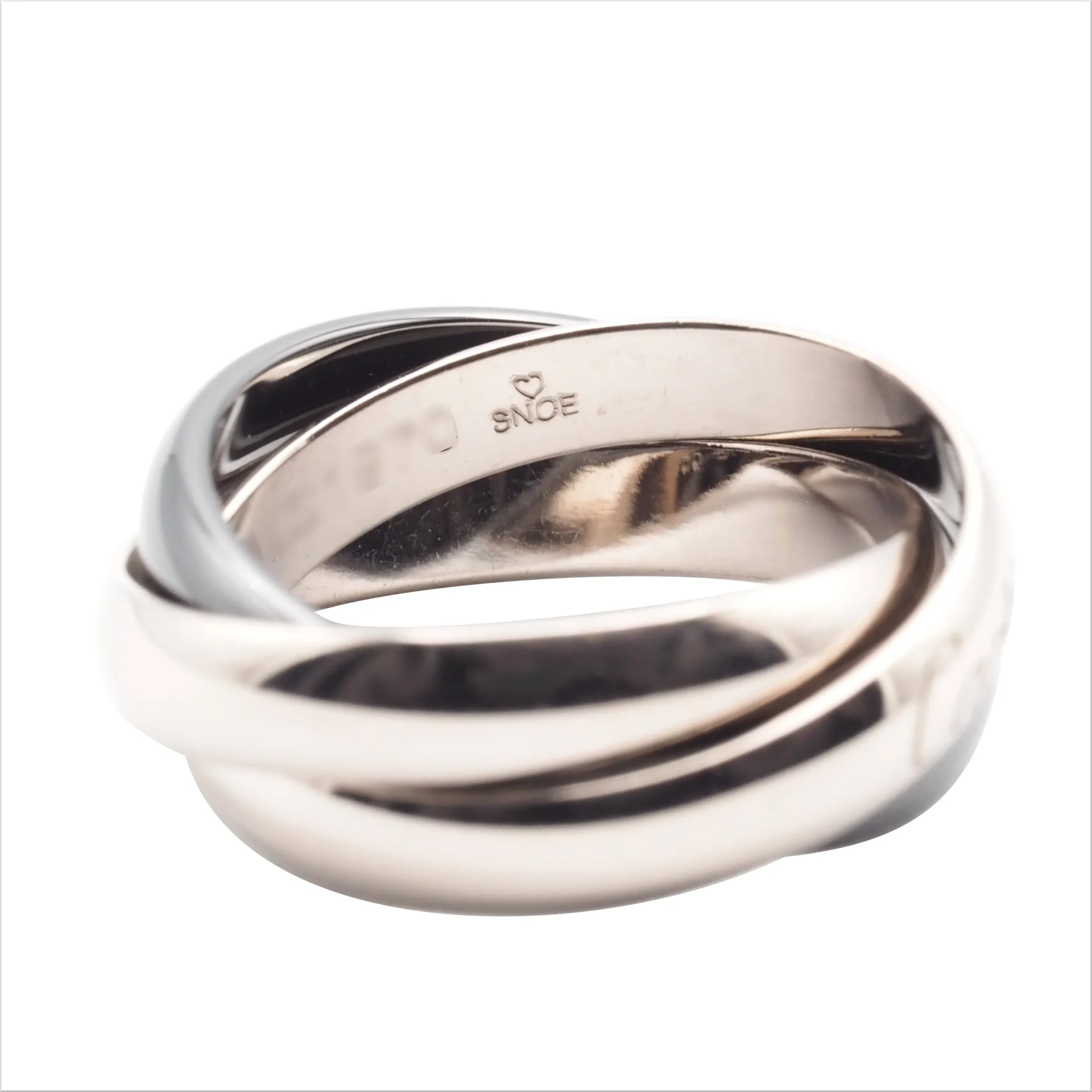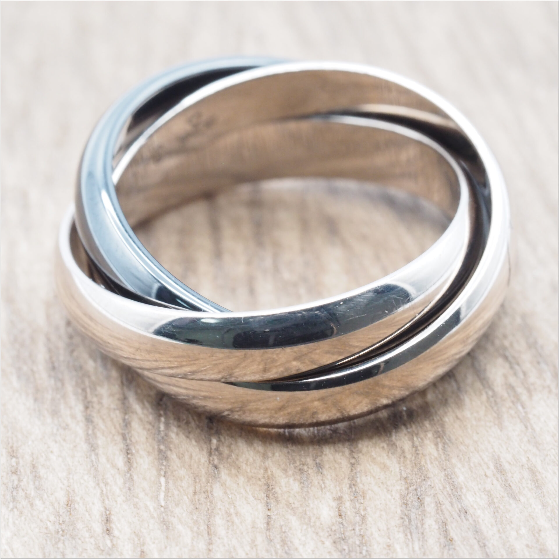 トリニティリングは、1924年に誕生したブランドを象徴する人気モデルです。ピンク・イエロー・ホワイト、3色のゴールドが重なり合い、それぞれ「愛情・友情・忠誠」を表すとされております。シンプルながら指元で美しく動き、上品な存在感を演出してくれます。こちらはホワイトゴールドとブラックセラミックを組み合わせたモダンなデザインが特徴です。時代や性別を問わず永くお使いいただける、特別な一本でございます。